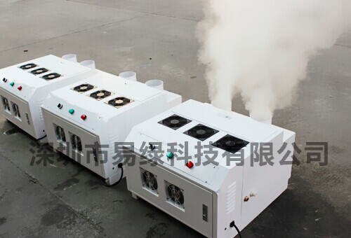 找了三家公司試裝比較效果,易綠公司的冷霧機及管件做工最精細,質量,材質